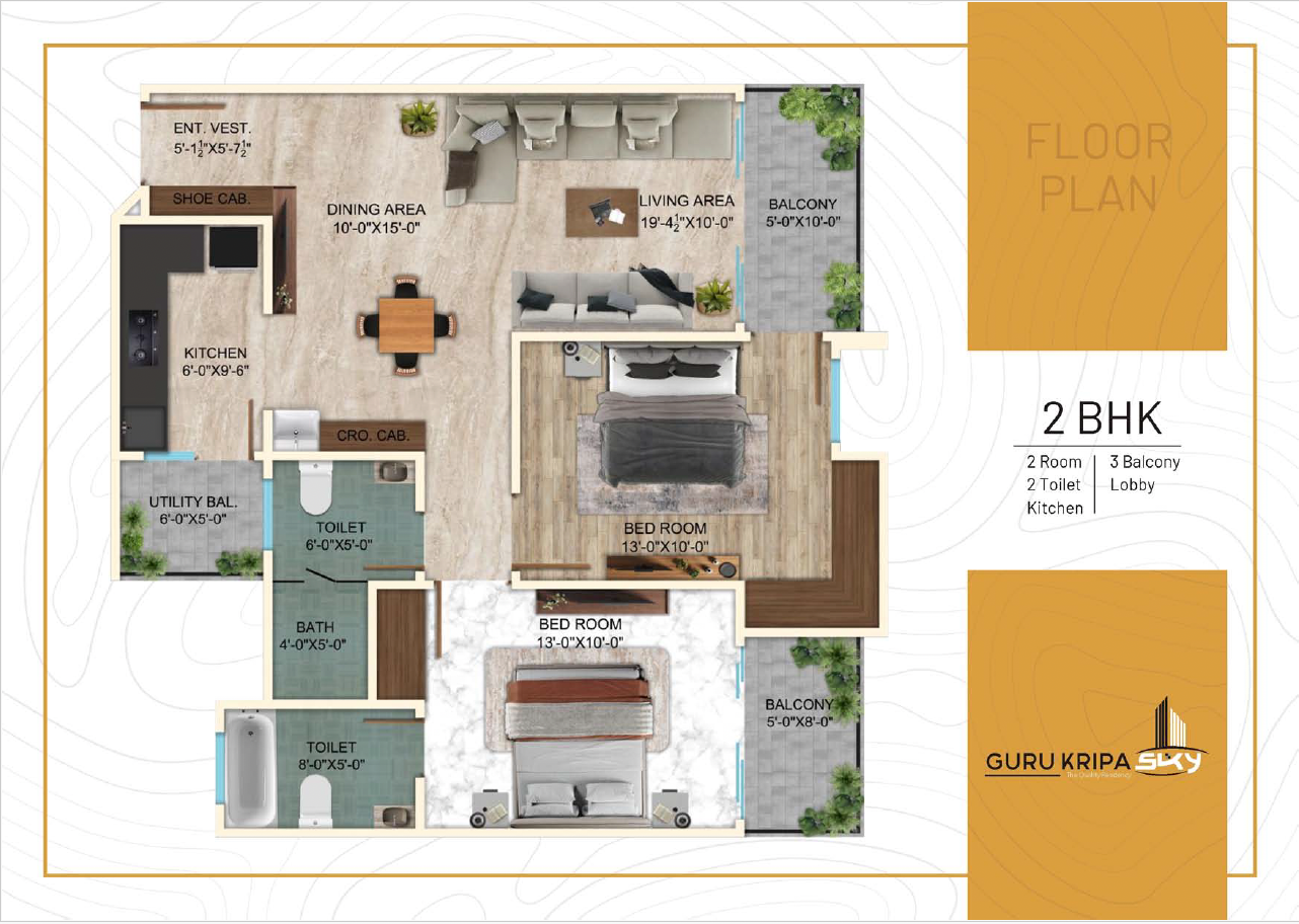 At Guru Kripa Sky, every apartment is thoughtfully crafted to offer a perfect balance of luxury and tranquility. The property’s spacious 2 & 3 BHK apartments feature airy roomsmaximum natural light, and smartly utilized spaces, ensuring that every corner of your home exudes warmth and sophistication.