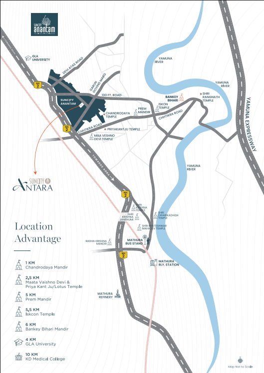 Suncity Antara in Vrindavan has multiple amenities, and its centric locale will rejoice you in the scared city. Here, the luxury bedrooms, spacious living arena, and grandeur spaces are the epitome of elegance. Enjoy leisurely luxuries and comfort close to Lord Krishna.